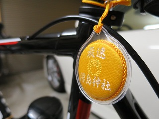 | 自転車用の御守りです。 この度、増車する事になり1台分追加。 前回は通販で直接郵送してもらったけど 今回は自分で買いに行きました♪ はい、熊本の浮島神社まで。 |