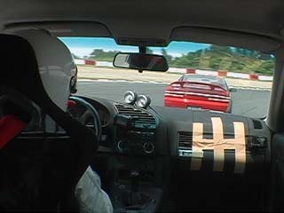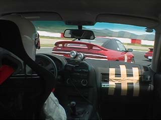 下りながらのストレートの後の3コーナー(?)の ブレーキングで追い詰めて、 その後の右コーナー手前で 180SXをパスしました。 |