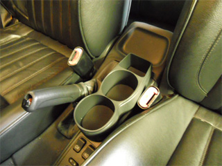 | コレ、装着前の写真です。 ハンド(サイド)ブレーキ横の 収納部に差し込んで固定します。 |