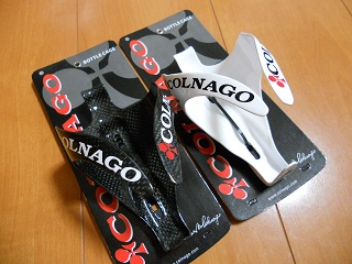 | コルナゴ・ボトルケージ。 今回はブラックとホワイトを1個ずつ購入♪ |