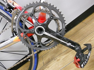 | カンパならではのカーボンクランクが カッコいいです!(^^)v ちなみに歯数は53X39T、172.5mmを選択。 今まで52x39Tだったんで、踏み切れるか 不安もありますが、172.5mmの52サイズは 納期が掛かると言われ、 このサイズにしました。(^^ゞ |