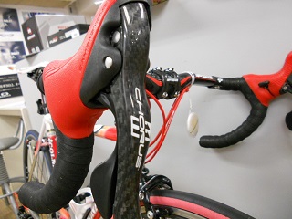 | 11速を誇示するかのようなロゴ。(笑 今回ブラケットは赤にしてみた。 |