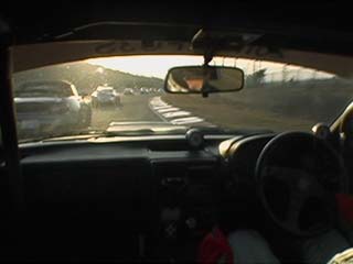| 前には予選9番手のしらきち君、10番手にはoguさん、 11番手には私、12番手にはMEIさんと 知り合いな方に挟まれてる私です。(>_<) 意地のぶつかり合いになって接触しなければ良いのだが・・・ と不安の中での決勝です。 予選の時に忘れてた助手席まで取って準備はOKっす! このページは私の車載から、決勝の模様をちこ〜〜っと紹介です。 |