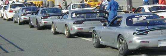| ARI号を含め、シルバーのFD3Sが4台並びます。 なんだか妙な光景です。(笑) |