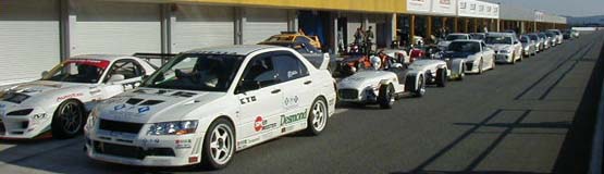 | 予選の順番にコースインです。 ズラ〜っと並んでます。 来年はレースクラスに出場しようかな?(ぼそ)<ゾンビ号 |