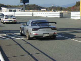 | ボンネ・カラー?のFD3Sの次に コースインするARI号。 今回は予選時に車が不調だったらしく、 中盤からのスタートです。 |