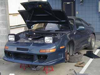 サイドステップも装着したけど、画像はこれ一枚だけ。(^^ゞ Fスポイラー装着時の写真です。(^^)v このせいで、ノーマルの車高なのに、 自宅前の出入口をガリガリ言わせてしまうようになりました。(+_+) でもカッコ良いから許す!(爆) |