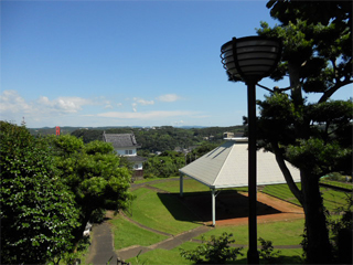 天守閣より亀岡神社に向かいます。 綺麗な青い花も咲いてました。 |