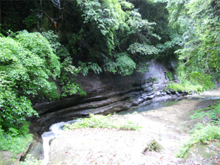 | 渓谷の中を通って、到着! 思ったよりデカかったです。<東椎屋の滝 |