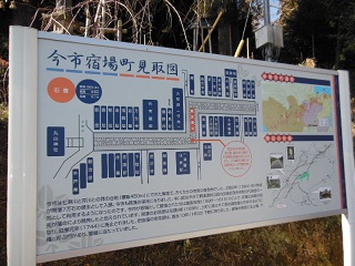 | <今市石畳の説明・・・以下、転記文> 今市石畳は肥後藩主細川氏と岡藩主中川氏の参勤交代に使われた街道の一部であり、 大分市野津原町今市に残されています。 石畳道の延長は660mもあり、その全長にわたって切り石が並べられた全国的にも 珍しい石畳街道で、大分県の指定史跡となっています。 この今市宿は、中川氏によって岡藩の宿場町として文禄三年(1594年)に 開設されており、お茶屋や宿屋、代官所などが軒を連ね、物資や旅人が行き交う 拠点として近郊随一の繁栄を見たと言われています。 また、今市の道筋は、一筋道の中央を左右に2回直角に曲げてあり、 その両角の間に防火藪を設けるなど特殊な技法を用いた跡が見られます。 さらには、今市石畳道の起点側(熊本側)には、加藤清正が創建したと 伝えられる丸山神社が位置しています。 |