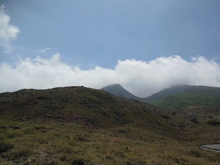 | 向こうに見えるのは中岳、 高千穂峰ですかね? |