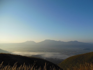 | 阿蘇平野の内牧は 霧の中でした。 寒かったもんね。(^_^;) |