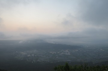 | AM5:00過ぎに到着。 ちょうど日出の時間だ。 しかし、空は曇ってるし、阿蘇山も見えず! いつも居るカメラマン達はこの日2名しか 居ませんでした。(^^ゞ |