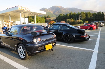 | 今朝はAM3:40起床。 睡眠時間は1時間半ってとこです。(^^ゞ コンビニで朝食を購入するとくじ引きで胡麻麦茶が当たりました。 今日は運良さそうです♪ ・・・と思ったのも束の間。 今朝も久留米ICから高速乗ったんですが、本線へ合流した直後に 追越し車線に車線変更したところ、動物の亡骸を踏んじゃいました。 ゴメンナサイ、ゴメンナサイ、マジで。<(_ _)> 血飛沫がボディーに付いてたらど〜しよ?とか不安に思いながらドライブ。 はぁ〜、今日はなんか嫌な感じ。 大津の某所に到着したのは、AM5:30過ぎでした。 暫くしたらクルマの台数も集まり・・・ AM6:00過ぎだったかな? 何を思ったか、私は常連さんの前へと・・・先頭で走り出すw 二重ノ峠までは一般車につかまって、のらりくらりと。 それにしても台数多いなぁ〜。。。とほほ。 二重ノ峠のヘアピン区間を終えた頃。 後の常連さんのひとりアウディS3に張り付かれ・・・即、THE END!(自爆 ハザード出して、道を譲ると直後に居た黄エキシージさんにも抜かれ・・・ 追掛けようとするも、私のテクでは無謀に感じ、距離をそこそこ取って追掛けました。 ラピュタ付近は予想通りの路駐の嵐。 その後も前車につかまりつつの高速ドライブ。 途中まではなんとか黄エキシージさんを視界にとらえてたんですけどね。 やまなみハイウェイとの交差点に到着した時には既に視界から消えてました。(T_T) レッド付近で2速から3速にシフトアップする時に3速に入らない。 1,000rpmくらい下げて変速したら問題無いんだけどね、持病かも?(苦笑 |