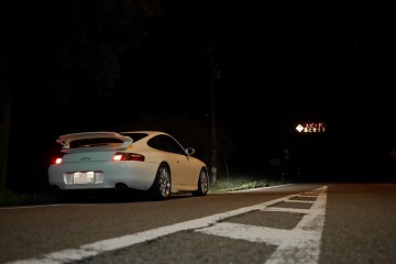 | Mizuwake Pass。 AM5:06、 IN。 リズム良くガスペダル踏み抜いて走るも、途中で一般車につかまりペースダウン。 前を譲ってもらうが・・・ 路肩部が徐々にWETになり、さらにはこの時期(秋)特有の落ち葉が 溜まっており、何もリスクを冒してまで踏み抜くことは無いかと。。。 (アクセルよりブレーキの方が特に・・・) Choujabaruまでは流して走りました。 環境に優しい燃費走行になりましてん!(^^ゞ |