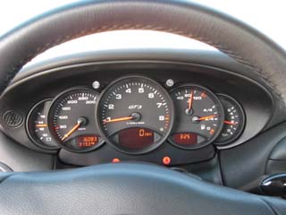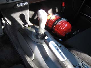 サイドブレーキのレバーには「GT3」の文字。 MTは6速になってます。 シフトの前に小さくあるのはキルスイッチだよ〜ん♪ 使わないけど・・・。(^^ゞ |