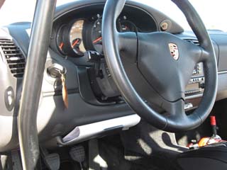 助手席にグローブBOXがありません。 車検証はココに保管します。 はい、ステアリングの下です。(^^ゞ 996後期型からは、グローブBOXが装備されるようです。 |