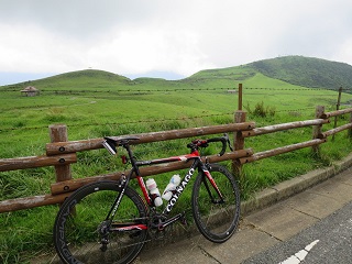| 暫く走ると長〜〜い火の山トンネルってのがありまして、 トンネルの中走ってる時に後ろから、 「romanさ〜〜ん」の声が♪ お〜ぅ、思ったより早かったのねって事で合流しましたとさ。 ココで頑張って、足なんぞ攣ったら元も子もない。 笑われるに決まってる。 三味線を弾くように?・・・いや、正確に書けば、 自分の力量の70%の力で残りをヒルクライムしました。 草千里手前で、ゴロゴロと雷発生! 「カーボンって落ちやすいんですってよ!」 なんざ言われながら、霧に包まれた草千里の中へ突入。 下りに入ると凄い豪雨になりまして・・・ 雨が痛い!(+o+) マジで痛い!(+o+) スタート前に今日は要らんやろうと思って、車に放置してきた ベストのレインウェアが恋しくなりました。(T_T) |