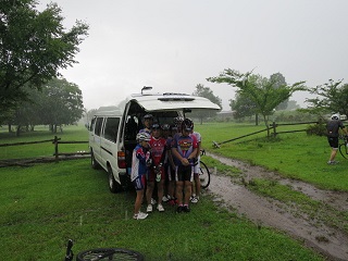 | ゴール後は雨の中、昼食を頂いて、 しばし知人の仲間たちと雑談して帰路につきました。 本日、いろんな方とお会いできてうれしかったです。 毎回決まり事のように書いてますが、スタッフの皆さん、 参加者の方々、本日お会いした知人の皆さん、ありがとうございました。<(_ _)> 今回の阿蘇望は悪天候で半分しか走れず、体力的には あんまし走った感じがしない結果でしたが、仕方ないですね。 でも、こ〜んな阿蘇望もありかとも思ってます。 あんな豪雨の中走るなんて、普通のサイクリングじゃ有り得ないし、 貴重な経験をしたと前向きに思う事にしてます。(^_-)-☆ 来年もエントリーしよっかな♪ |