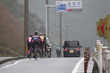 | R201号線のバイパスに入り、ひとつ目のトンネル越えた付近(香春あたり)で暗闇が覆いはじめる。 終盤はライトオン状態。 前半タダ乗りでお世話になった集団が我々のトレインの後ろに着く。 最後の最後に大きい集団の先頭を私が牽いてた。 ちょっぴり気分が良かったっす!(笑 |