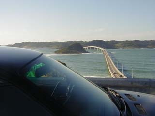 角島と本土を結ぶ長い橋の途中にて撮影。 ちなみに駐停車禁止区間です。 はい、避難帯に停車しました。(^^ゞ |