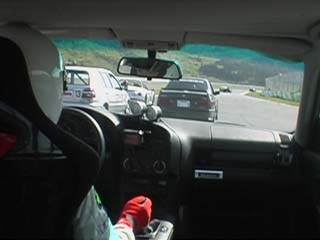 急勾配の複合前。 この後右コーナーなんですが、アウト側のプジョーに 付いていくか、イン側のゴルフに付いて行くか 悩んでました。 結局は、プジョーの後ろへ・・・ |