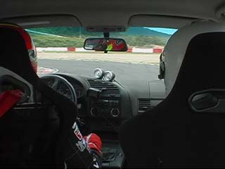 ココから数枚は山野選手ドライブによる 同乗走行時の車載画像です。 #山野選手ドライブ&右(助手席)側が私 コースイン時。 ドキドキドキ・・・・。 ワクワクワク・・・・。 |