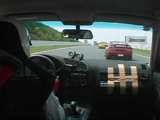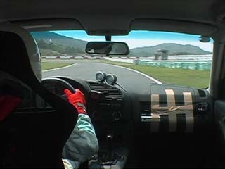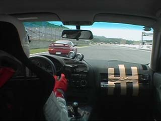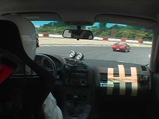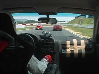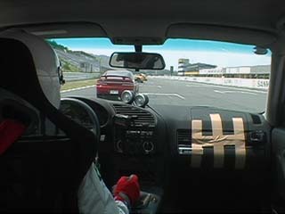 下りながらのストレートの後の3コーナー(?)の ブレーキングで追い詰めて、 その後の右コーナー手前で 180SXをパスしました。 |