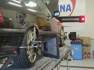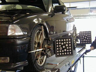 | とにかく先日のAUTOPOLISの走行でド・アンダー!(+_+) 押しても引いてもアンダー・ステア出まくりでした。 おそらくLSDを装着したせいです。(^^ゞ ってなわけで、現状のアライメントを計測してみることに・・・ お店はお世話になってるBitteWESTさんです。 |
