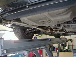 | 交換後の街乗りインプレ・・・。 Fパイプを装着したものの、マフラーにサブ・サイレンサーが付いてるせいか、 街乗りレベル(3000rpm以下)では五月蝿くありません。 高回転では、少々五月蝿くなった感じです。 エンジンのフケの方は、気のせいか高回転が回るかな?ってな印象です。 高回転を多用するサーキットを早く走ってみたいものです。 あ、少々排気ガスが臭くなりました。(爆 |