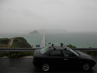 | せっかく高速使って下関まで来たので、 山口県内をドライブすることに・・・。 写真は自転車で来る予定だった角島です。 ココまでの道。 途中までカッパ着て走ってる参加者と併走。 やっぱね、参加しなくて良かったわ・・・。 皆さん、しかめっ面で水溜り避けながら 走行してました。 オイラだったら確実にコケルかなと・・・。(汗 ちなみに雨は、ず〜〜っとひどく降ってましたばい。 |