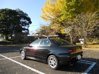 | 県道28号線を南下し、 日南市の飫肥に到着。 写真は飫肥城の無料駐車場です。 イチョウが綺麗でした♪ |