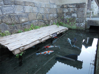 | 武家屋敷には水路が似合う? 結構の割合で、鯉が泳いでます。 ココ飫肥城も鯉が居ました。 |