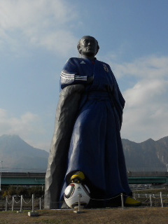 | 雲仙・普賢岳をバックに巨大な龍馬像! しかも青色。(^^;; なんで、サッカーボールなんだぁ?と思いながらも 記念撮影して帰りました。 PS. 近くの駐車場では、車好きっぽい連中が オフ会みたいなのをしてたなぁ〜。<長崎ナンバー AE86、Z31、ランエボ・・・etc、沢山♪(・o・) |