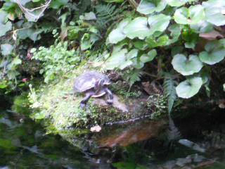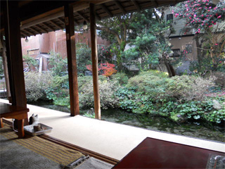 | 客室から庭園を眺めたところ。 池があり、湧き水のせいもあり、 とっても綺麗です。 鯉はもちろんの事、他の魚も沢山 泳いでました。 |