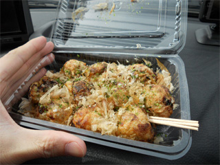 ちょっと軽く軽食を! 「道の駅 たのうら」のたこ焼きです。 塩たこ焼き、美味いっす! 380円也よ〜。 ちなみにかなりタコがでかかったです。 v(*'-^*)bぶいっ♪ |