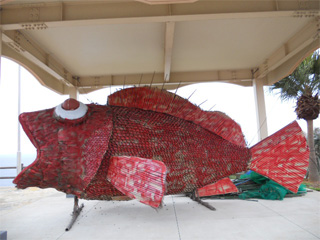 本土に戻り、R3号線をさらに南下。 「道の駅 阿久根」に到着です。 この建物・・魚をデザインしてるのでしょうか・ そういう感じの色彩のペイントですね♪ |