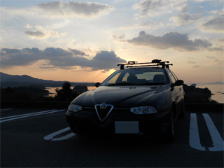 | 写真では分かりづらいですが、 黄砂で黄ばんだろまお君(Alfa156)。(爆 |