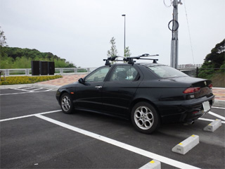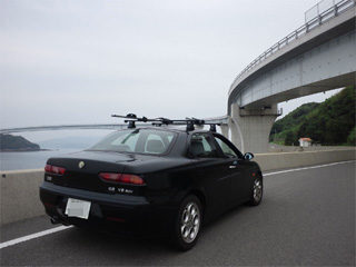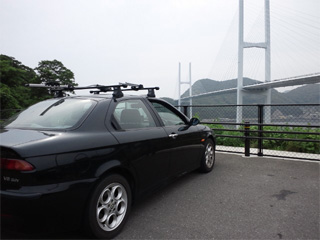 | 駐車場にろまお君(Alfa156)を駐車し、 徒歩で・・・・。 なかなか長い橋でした。 コレが伊王島大橋です! (山口の角島大橋みたいな感じ?) |