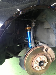 | 装着後の写真です。 ノーマル比でフロント-30mm、リア-20mm まだまだ下げれそうですが、 使い勝手考えてこのくらいにしときましょ〜♪(^_-)-☆ |
