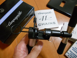 | CAMPAGNOLO(カンパ)のUT-CN300。 11速用のチェーン工具です。 カンパの工具は高いですわぁ〜。 10速用よりさらに高かった。(+o+) |