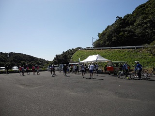 | 峠の下りで1台落車で救急車が 来てましたが、我々は無事にエイドに 到着っす! 昨年、ココのエイドは見落としで スルーしたとこです。(^^ゞ |