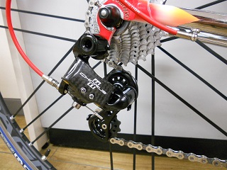 | リアディレーラーです。 コチラもカーボンになりました♪ ホイール脱着時に思ったんですが、 動きも軽さもヴェローチェとは 違いますね、良い感じです♪ |