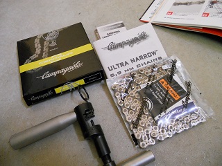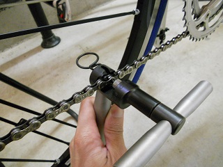 | カンパ10速用のチェーンカッターで えい、やっ! |