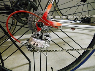 | この作業が一番厄介でした。(^^ゞ NEWチェーンにコネクトピンを差し込む作業。 Fをインナー、Rをトップにして チェーンのテンションが一番掛からない 状態で作業したんですが、なかなか。。(苦笑 |