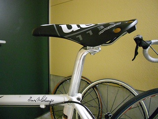 | 右は交換前のサドルとシートポスト。 サドルは、SELLE SAN MARCO の REGAL。 シートポストは、Kalloyのアルミ製(?)です。 |