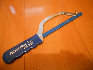 | 昨夜、夜な夜な交換作業をしていたんですが、 シートポストの長さが長いことが判明。(^^ゞ 急遽、近所のナフコで金切ノコ(500円程度)を 購入です。(苦笑 |