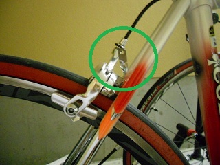 | 先日装着したステーがコイツ。 緑の○のとこです。 (Rブレーキんとこね♪) |