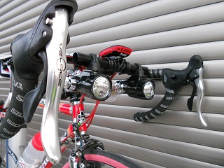 | さて、ボチボチ出発しますかね。 明日の祝日は雨だし、今日のうちに稼いどくか。 ふふっ、パチンコに行くわけではない。 稼ぐというのは自転車での走行距離である。 今日は昨日に比べて、やや気温が低いようだ。 冬物のジャージの上下、反射ベストを着込み、 Bikeには充電した電池を詰め込んだLightと サイコンを装着。 ドリンクは水で十分だろう。 |