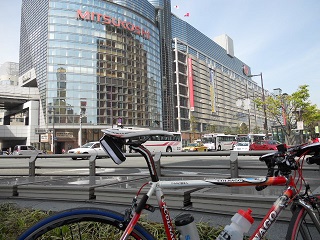 | 天神に着いたのは、AM10:30前くらいだったかな? 歩行者、人、クルマ、バス、自転車・・・に信号機。 全て多くてロードバイクで気持ち良く走れるとこ なんてありませんでした。<天神周辺(T_T) |